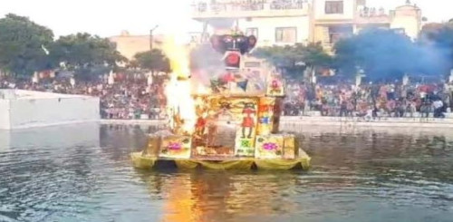 ਹਜ਼ਾਰਾਂ ਲੋਕਾਂ ਨੇ ਦੇਖਿਆ ਪਾਣੀ 'ਚ ਤੈਰਦੀ ਲੰਕਾ ਦੇ ਦਹਿਨ ਦਾ ਨਜ਼ਾਰਾ