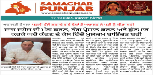 ਦਾਜ ਦਹੇਜ਼ ਦੀ ਮੰਗ ਕਰਨ, ਤੰਗ ਪ੍ਰੇਸ਼ਾਨ ਕਰਨ ਅਤੇ ਕੁੱਟਮਾਰ ਕਰਕੇ ਘਰੋਂ ਕੱਢਣ ਦੇ ਕੇਸ ਵਿੱਚੋਂ ਮੁਲਜ਼ਮ ਬਾਇੱਜ਼ਤ ਬਰੀ