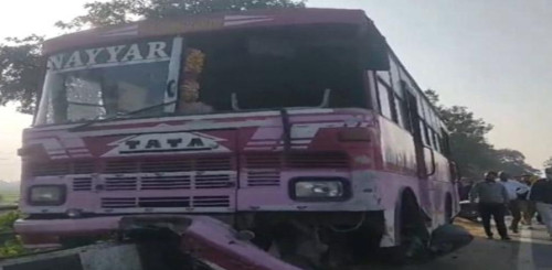 ਬੇਕਾਬੂ ਬੱਸ ਪੁਲ ਦੀ ਰੇਲਿੰਗ 'ਤੇ ਚੜੀ , ਬੱਸ ਛੱਡ ਕੇ ਭੱਜਿਆ ਡਰਾਈਵਰ, ਚਾਰ ਸਵਾਰੀਆਂ ਜ਼ਖਮੀ