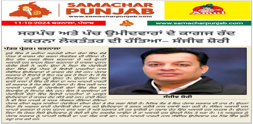 ਸਰਪੰਚ ਅਤੇ ਪੰਚ ਉਮੀਦਵਾਰਾਂ ਦੇ ਕਾਰਜ ਰੱਦ ਕਰਨਾ ਲੋਕਤੰਤਰ ਦੀ ਹੱਤਿਆ– ਸੰਜੀਵ ਸ਼ੋਰੀ