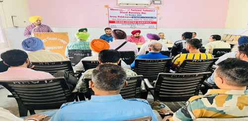 ਸਿਹਤ ਵਿਭਾਗ ਬਰਨਾਲਾ ਵੱਲੋਂ ਕੌਮੀ ਸਵੈ ਇੱਛਕ ਖੂਨਦਾਨ ਦਿਵਸ ਮੌਕੇ ਸ਼੍ਰੀਮਤੀ ਪੂਨਮਦੀਪ ਕੌਰ ਡਿਪਟੀ ਕਮਿਸ਼ਨਰ ਬਰਨਾਲਾ ਦੇ ਦਿਸ਼ਾ ਨਿਰਦੇਸ਼ ਅਧੀਨ ਚਲਾਈ ਗਈ ਵਿਸ਼ੇਸ਼ ਮੁਹਿੰਮ ਨੂੰ ਸਮਰਪਿਤ ਇੱਕ ਸਮਾਰੋਹ ਦੌਰਾਨ ਖੂਨਦਾਨ ਕਰਨ ਵਾਲੇ ਮਹਾਂਦਾਨੀਆਂ ਦਾ ਸਨਮਾਨ ਕਰਨ ਲਈ ਦਫ਼ਤਰ ਸਿਵਲ ਸਰਜਨ ਬਰਨਾਲਾ ਵਿਖੇ ਕੀਤਾ ਗਿਆ ।