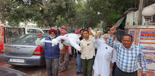 ਬੱਚੇਜਮ ਅਤੇ ਪੇਂਸ਼ਨਰ ਸੰਗਠਨਾਂ ਨੇ ਕੈਬਿਨਟ ਮੰਤਰੀ ਗੁਰਮੀਤ ਸਿੰਘ ਮੀਤ ਪਰਿਵਾਰ ਦੇ ਘਰ ਸਾਹਮਣੇ ਪੰਜਾਬ ਸਰਕਾਰ ਦਾ ਅਰਥ ਹੈ ਜਲਕਰ ਰੋਸ਼ ਪ੍ਰਦਰਸ਼ਨ