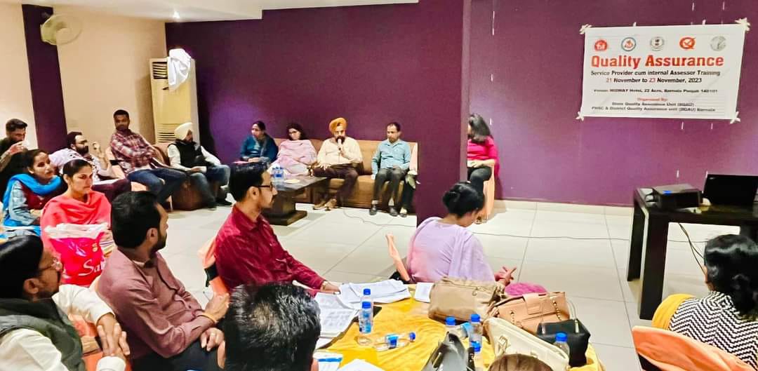 ਸਿਹਤ ਵਿਭਾਗ ਲੋਕਾਂ ਨੂੰ ਸਰਕਾਰੀ ਸਿਹਤ ਸੰਸਥਾਵਾਂ ਵਿੱਚ ਗੁਣਵੱਤਾ ਭਰਪੂਰ ਅਤੇ ਉੱਤਮ ਸਿਹਤ ਸੇਵਾਵਾਂ ਦੇਣ ਲਈ ਹਮੇਸ਼ਾ ਵਚਨਬੱਧ ਹੈ ਸੋ ਇਸ ਸਬੰਧੀ ਸਰਵਿਸ ਪ੍ਰੋਵਾਇਡਰ ਕਮ ਇੰਟਰਨਲ ਅਸੈਸਮੈਟ ਟ੍ਰੇਨਿੰਗ ਸਟੇਟ ਵੱਲੋਂ ਸਿਹਤ ਵਿਭਾਗ ਬਰਨਾਲਾ ਨੂੰ ਹੋਟਲ ਮਿਡ ਵੇਅ ਵਿਖੇ ਦਿੱਤੀ ਜਾ ਰਹੀ ਹੈ ।ਇਸ ਟ੍ਰੇਨਿੰਗ ਦੌਰਾਨ ਡਾ ਜਸਬੀਰ ਸਿੰਘ ਔਲ਼ਖ ਸਿਵਲ ਸਰਜਨ ਬਰਨਾਲਾ ਨੇ ਕਿਹਾ ਕਿ ਇਸ ਤਿੰਨ ਰੋਜਾਂ “ਕੁਆਲਟੀ ਐਸ਼ੋਰੈਂਸ” ਟ੍ਰੇਨਿੰਗ ਸੈਸ਼ਨ ਵਿੱਚ ਸਿਹਤ ਵਿਭਾਗ ਬਰਨਾਲਾ ਦੇ ਮੈਡੀਕਲ ਅਤੇ ਪੈਰਾ ਮੈਡੀਕਲ ਸਟਾਫ ਨੂੰ ਸਿਹਤ ਸੰਸਥਾਵਾਂ ਦੀ ਸਾਫ ਸਫ਼ਾਈ , ਮਰੀਜ਼ਾਂ ਨੂੰ ਮਿਲਣ ਵਾਲੀਆਂ ਸਿਹਤ ਸਹੂਲਤਾਂ ਨੂੰ ਹੋਰ ਉੱਤਮ ਦਰਜੇ ਦਾ ਕਰਨ ਲਈ ਸਿੱਖਿਅਤ ਕੀਤਾ ਜਾਵੇਗਾ |ਇਸ ਸੈਸ਼ਨ ਵਿੱਚ ਡਾ ਔਲ਼ਖ ਨੇ ਦੱਸਿਆ ਕਿ ਇਸ ਤਿੰਨ ਰੋਜਾ ਟ੍ਰੇਨਿੰਗ ਸ਼ੈਸ਼ਨ ਦਾ ਫ਼ਾਇਦਾ ਹਰ ਸਾਲ ਹੋਣ ਵਾਲੀਆਂ ਰਾਸ਼ਟਰੀ ਪੱਧਰ ਦੀਆਂ ਜਾਂਚ ਟੀਮਾਂ ਵੱਲੋਂ ਕੀਤੇ ਜਾਂਦੇ ਵਿਸ਼ਲੇਸ਼ਣ ਵਿੱਚ ਜ਼ਰੂਰ ਹੋਵੇਗਾ ।