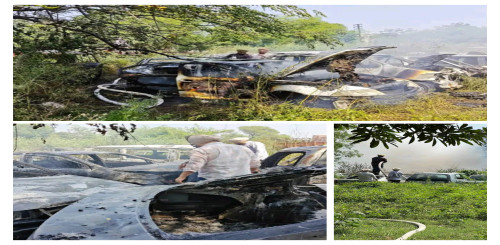 A massive fire broke out near Fortis Hospital in Mohali, burning 10 to 12 cars in the parking area. Fire brigade teams reached the spot and controlled the blaze. The exact cause of the fire is still unknown. मोहाली के फोर्टिस अस्पताल के पास पार्किंग में भीषण आग लग गई, जिसमें 10 से 12 गाड़ियां जलकर खाक हो गईं। फायर ब्रिगेड की टीम ने मौके पर पहुंचकर आग पर काबू पाया। आग लगने का कारण अभी तक स्पष्ट नहीं है। ---