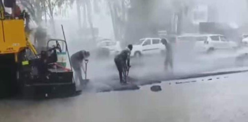ਵਰ੍ਹਦੇ ਮੀਂਹ ਵਿੱਚ ਬਣਾਈ ਜਾ ਰਹੀ ਸੜਕ, ਕਾਂਗਰਸ ਨੇ ਸਾਧਿਆ ਨਿਸ਼ਾਨਾ-ਕਿਹਾ-ਸਰਕਾਰ ਦੀ ਨਵੀਂ ਕਾਢwww.samacharpunjab.com