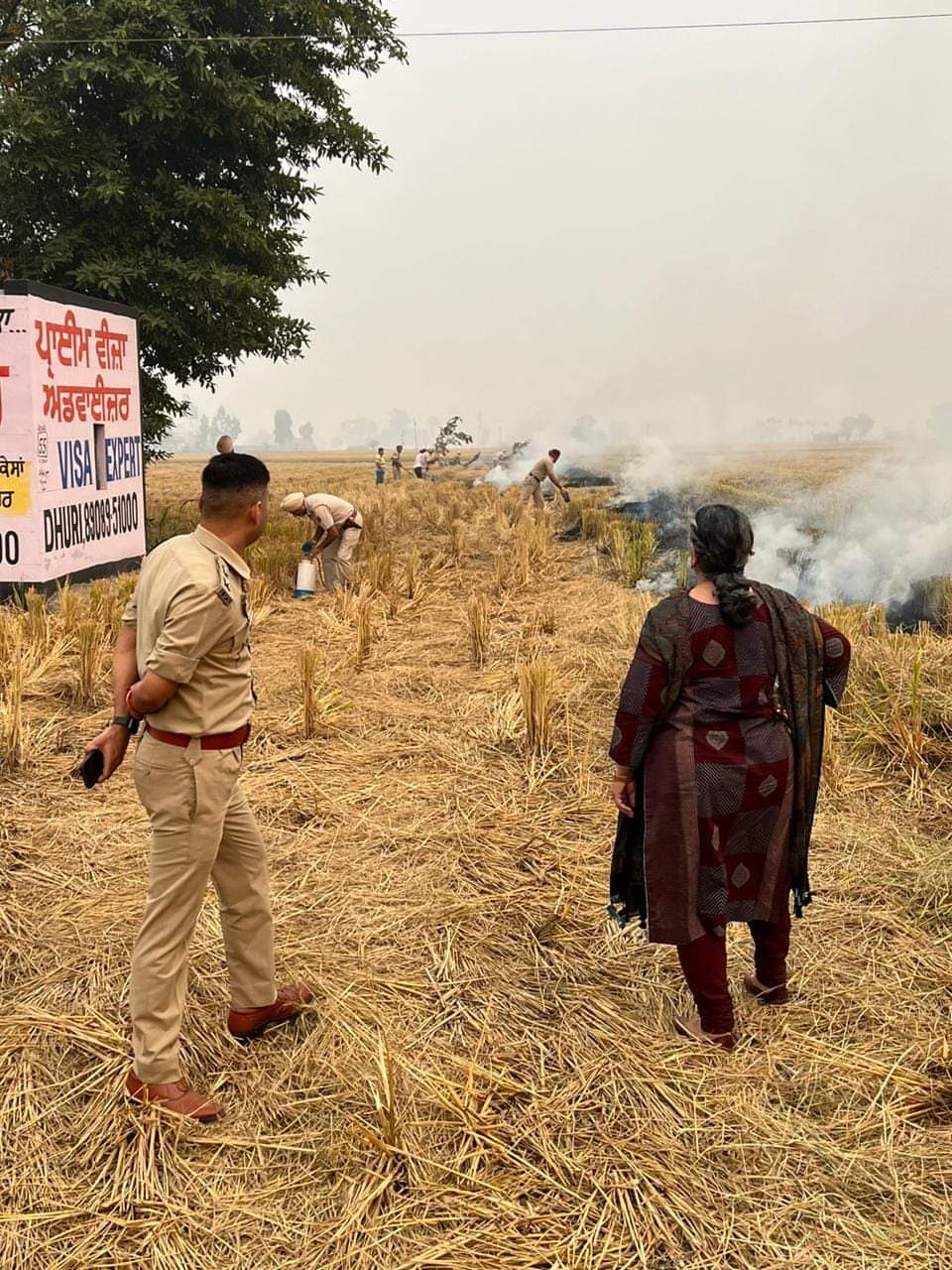 ਖੇਤਾਂ ‘ਚ ਝੋਨੇ ਦੀ ਪਰਾਲੀ ਨੂੰ ਅੱਗ ਲਗਾਉਣ ਤੋਂ ਬਚਾਉਣ ਲਈ ਜ਼ਿਲ੍ਹਾ ਸਿਵਿਲ ਅਤੇ ਪੁਲਸ ਪ੍ਰਸ਼ਾਸਨ ਪੱਬਾਂ ਭਾਰ ਹੈ।ਡਿਪਟੀ ਕਮਿਸ਼ਨਰ ਬਰਨਾਲਾ ਸ਼੍ਰੀਮਤੀ ਪੂਨਮਦੀਪ ਕੌਰ ਅਤੇ ਜ਼ਿਲ੍ਹਾ ਪੁਲਿਸ ਮੁੱਖੀ ਸ੍ਰੀ ਸੰਦੀਪ ਮਲਿਕ ਨੇ ਅੱਜ ਵੱਖ ਵੱਖ ਪਿੰਡਾਂ ਦਾ ਦੌਰਾ ਕੀਤਾ ਅਤੇ ਕਿਸਾਨਾਂ ਨੂੰ ਅੱਗ ਨਾ ਲਗਾਉਣ ਦੀ ਅਪੀਲ ਕੀਤੀ।ਇਸ ਮੌਕੇ ਉਨ੍ਹਾਂ ਨੇ ਪਿੰਡ ਮੱਲੀਆਂ, ਪੱਖੋ ਕੈਂਚੀਆਂ ਅਤੇ ਚੁੰਘਾਂ ਵਿਖੇ ਪਹੁੰਚ ਕੇ ਖੇਤਾਂ ਵਿਚ ਲੱਗੀ ਅੱਗ ਬੁਝਵਾਈ। ਇਸ ਮੌਕੇ ਮੁੱਖ ਖੇਤੀਬਾੜੀ ਅਫ਼ਸਰ ਡਾ.ਜਗਦੀਸ਼ ਸਿੰਘ ਨੇ ਆਪ ਖੁਦ ਪਿੰਡ ਮੱਲੀਆਂ ਵਿਖੇ ਅੱਗ ਬੁਝਾਈ ।ਡਿਪਟੀ ਕਮਿਸ਼ਨਰ ਅਤੇ ਜ਼ਿਲ੍ਹਾ ਪੁਲਿਸ ਮੁੱਖੀ ਨੇ ਕਿਸਾਨਾਂ ਨੂੰ ਪੁਰਜ਼ੋਰ ਅਪੀਲ ਕੀਤੀ ਕਿ ਉਹ ਪਰਾਲੀ ਨੂੰ ਅੱਗ ਨਾ ਲਗਾਉਣ ਬਲਕਿ ਉਸ ਦਾ ਪ੍ਰਬੰਧਨ ਕਰਨ। ਜੇ ਕਰ ਕਿਸੇ ਵੀ ਕਿਸਾਨ ਨੂੰ ਖੇਤੀ ਸੰਦਾਂ ਦੀ ਲੋੜ ਹੈ ਤਾਂ ਉਹ ਆਪਣੇ ਨੇੜਲੇ ਖੇਤੀਬਾੜੀ ਦਫ਼ਤਰ ਜਾਂ ਸਹਿਕਾਰਤਾ ਵਿਭਾਗ ਨਾਲ ਸੰਪਰਕ ਕਰੇ।