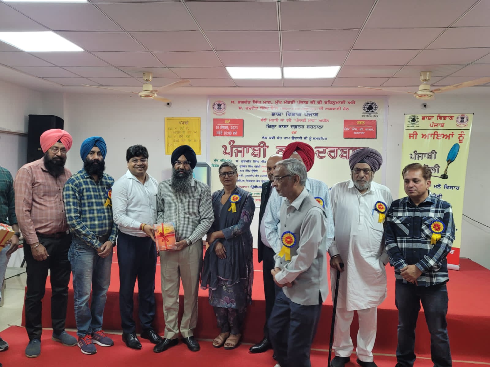 ਮੁੱਖ ਮੰਤਰੀ ਸ.ਭਗਵੰਤ ਸਿੰਘ ਮਾਨ ਦੀ ਰਹਿਨੁਮਾਈ ਅਤੇ ਸਿੱਖਿਆ ਅਤੇ ਭਾਸ਼ਾਵਾਂ ਬਾਰੇ ਮੰਤਰੀ ਸ.ਹਰਜੋਤ ਸਿੰਘ ਬੈਂਸ ਦੀ ਅਗਵਾਈ ਹੇਠ ਭਾਸ਼ਾ ਵਿਭਾਗ ਵੱਲੋਂ ਨਵੰਬਰ ਮਹੀਨੇ ਨੂੰ ਪੰਜਾਬੀ ਮਹੀਨੇ ਵਜੋਂ ਮਨਾਉਂਦਿਆਂ ਪੰਜਾਬ,ਪੰਜਾਬੀ ਅਤੇ ਪੰਜਾਬੀਅਤ ਨੂੰ ਸਮਰਪਿਤ ਸਮਾਗਮ ਕਰਵਾਏ ਜਾ ਰਹੇ ਹਨ।ਇਸੇ ਹੀ ਲੜੀ ਤਹਿਤ ਜ਼ਿਲਾ ਭਾਸ਼ਾ ਦਫਤਰ ਬਰਨਾਲਾ ਵੱਲੋਂ ਲੋਕ ਕਵੀ ਸੰਤ ਰਾਮ ਉਦਾਸੀ ਨੂੰ ਸਮਰਪਿਤ ਪੰਜਾਬੀ ਕਵੀ ਦਰਬਾਰ ਕਰਵਾਇਆ ਗਿਆ।ਬਿੰਦਰ ਸਿੰਘ ਖੁੱਡੀ ਕਲਾਂ ਕਾਰਜਕਾਰੀ ਜ਼ਿਲ੍ਹਾ ਭਾਸ਼ਾ ਅਫ਼ਸਰ ਨੇ ਜਾਣਕਾਰੀ ਦਿੰਦਿਆਂ ਦੱਸਿਆ ਕਿ ਭਾਸ਼ਾ ਵਿਭਾਗ ਦੇ ਵਧੀਕ ਡਾਇਰੈਕਟਰ ਡਾ.ਵੀਰਪਾਲ ਕੌਰ ਦੀਆਂ ਹਦਾਇਤਾਂ ਅਨੁਸਾਰ ਐੱਸ.ਐੱਸ.ਡੀ ਕਾਲਜ ਬਰਨਾਲਾ ਵਿਖੇ ਡਿਪਟੀ ਕਮਿਸ਼ਨਰ ਸ਼੍ਰੀਮਤੀ ਪੂਨਮਦੀਪ ਕੌਰ ਆਈ.ਏ.ਐੱਸ. ਦੀ ਪ੍ਰਧਾਨਗੀ ਹੇਠ ਕਰਵਾਏ ਸਮਾਗਮ ਦੀ ਸ਼ੁਰੂਆਤ ਵਿਭਾਗੀ ਧੁਨ ਨਾਲ ਹੋਈ।ਬਿੰਦਰ ਸਿੰਘ ਖੁੱਡੀ ਕਲਾਂ ਕਾਰਜਕਾਰੀ ਜ਼ਿਲ੍ਹਾ ਭਾਸ਼ਾ ਅਫ਼ਸਰ ਨੇ ਸਮੂਹ ਹਾਜ਼ਰੀਨ ਨੂੰ ਜੀ ਆਇਆਂ ਕਹਿੰਦਿਆਂ ਪੰਜਾਬ ਸਰਕਾਰ ਵੱਲੋਂ ਪੰਜਾਬੀ ਭਾਸ਼ਾ ਨੂੰ ਬਣਦਾ ਮਾਣ ਸਤਿਕਾਰ ਦਿਵਾਉਣ ਲਈ ਕੀਤੇ ਜਾ ਰਹੇ ਉਪਰਾਲਿਆਂ ਦੀ ਜਾਣਕਾਰੀ ਸਾਂਝੀ ਕੀਤੀ।ਉਹਨਾਂ ਕਿਹਾ ਕਿ ਨਵੰਬਰ ਮਹੀਨੇ ਨੂੰ ਪੰਜਾਬੀ ਮਹੀਨੇ ਵਜੋਂ ਮਨਾਉਣ ਦਾ ਮਨੋਰਥ ਵੀ ਪੰਜਾਬ,ਪੰਜਾਬੀ ਅਤੇ ਪੰਜਾਬੀਅਤ ਦਾ ਵਿਕਾਸ ਕਰਨਾ ਹੀ ਹੈ।ਇਸ ਦੌਰਾਨ ਉਹਨਾਂ ਸਮੂਹ ਜ਼ਿਲ੍ਹਾ ਵਾਸੀਆਂ ਨੂੰ ਆਪੋ ਆਪਣੀਆਂ ਦੁਕਾਨਾਂ ਅਤੇ ਹੋਰ ਅਦਾਰਿਆਂ ਦੇ ਨਾਮ ਬੋਰਡ ਸਰਕਾਰੀ ਹਦਾਇਤਾਂ ਅਨੁਸਾਰ 21 ਨਵੰਬਰ ਤੋਂ ਪਹਿਲਾਂ ਪਹਿਲਾਂ ਪੰਜਾਬੀ ਭਾਸ਼ਾ 'ਚ ਲਿਖਵਾਉਣ ਦੀ ਵੀ ਅਪੀਲ ਕੀਤੀ।