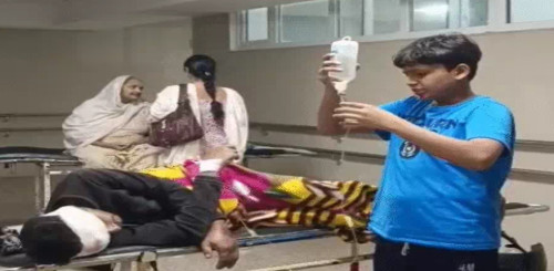 Shocking scenes at Chandigarh Sector 32 hospital — patients treated on stretchers and relatives forced to hold glucose bottles due to lack of stands.