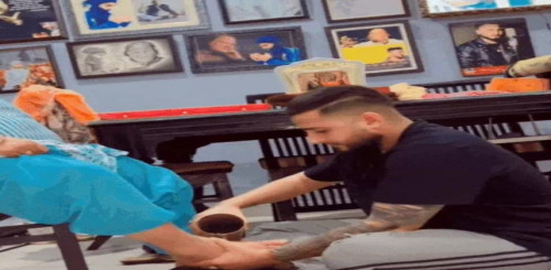 Punjabi singer Khan Saab shared an emotional video washing his parents’ feet and drinking that water, expressing deep respect and love for them. The video has gone viral on social media.