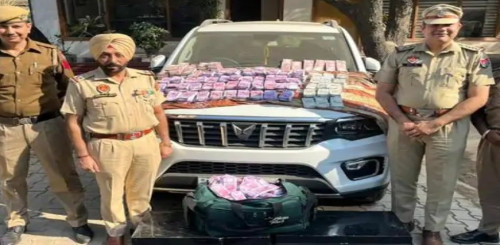 Mohali Police seized ₹9.88 crore in fake currency during a highway checkpoint and arrested two youths from Haryana. The accused used real notes on top and bottom of bundles and filled the middle with fake currency. Investigation is underway under DSP supervision.